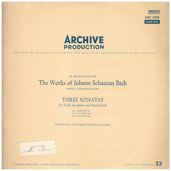 J S Bach: Three Sonatas for Viola da gamba & Harpsichord [Vinyl]