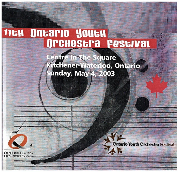 From the 2003 Festival at Centre In The Square, Kitchener-Waterloo, Ontario. Featuring the following Orchestras: Chinese Artists Society of Toronto; Durham; Halton; Hamilton; Kingston; Kitchener-Waterloo; La Jeunesse; Lakeridge; Niagara; Ottawa; Sault Ste. Marie; Sudbury; Toronto Chinese. Works include Canadian composers Stewart Grant, Keith Bissell, Godfrey Ridout, Murray Adaskin, Laura Meester.