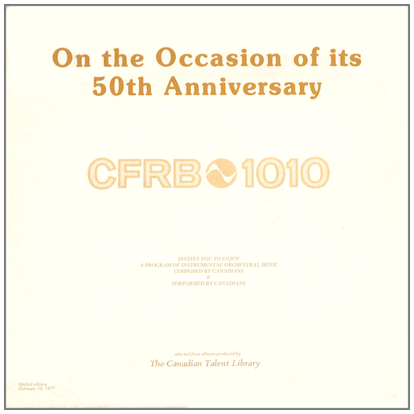 Compilation of Canadian music for Radio CFRB's 50th Anniversary. Limited Edition, Feb. 19, 1977.