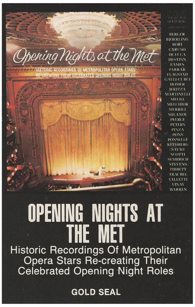 Historic recordings of Metropolitan Opera Stars Re-creating Their Celebrated Opening Night Roles.